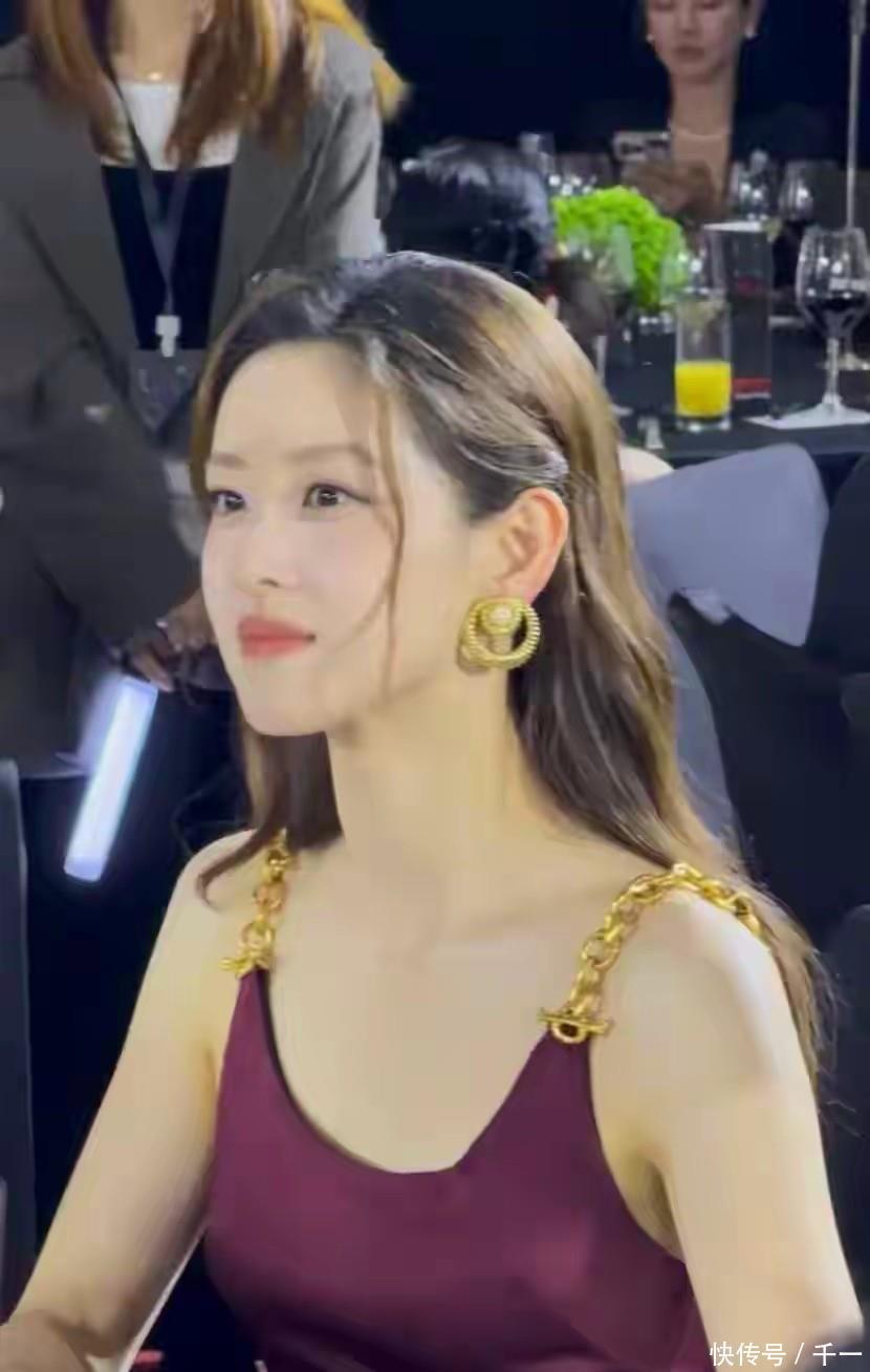 造型美学:明艳贵气VS松弛知性章泽天以一袭酒红色缎面吊带长裙惊艳全场,极简设计大胆展露肩颈线条,金色圆环耳饰与BV链条肩饰的点缀,将“贵气”与“学生时代的清澈感”完美融合。半扎发髻与自然垂落的发丝柔化了气场,在精英御姐的干练中注入柔和女人味。这种“权力着装”的示范,既符合她时尚掌舵人的新身份,又延续了公众对她“豪门贵妇”的固有认知。
