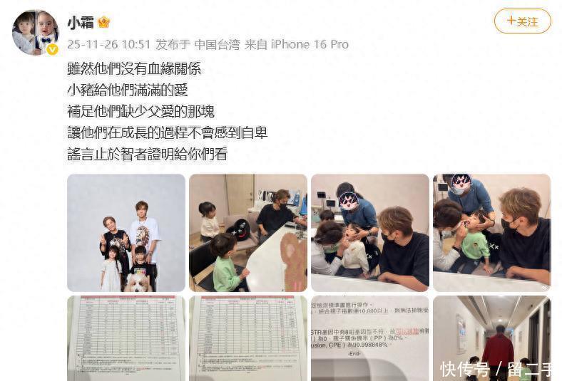 值得玩味的是,台媒曾报道罗志祥与小霜"为给孩子名分考虑结婚",但因小霜具备抚养能力,不符合台湾地区收养法而作罢。如今这份亲子鉴定报告,反而坐实了两人"超越血缘的家人关系"——罗志祥不仅承担孩子学费、保险,甚至安排他们寒暑假游学,被粉丝调侃"父爱如山,就是山体滑坡到了别人家"。