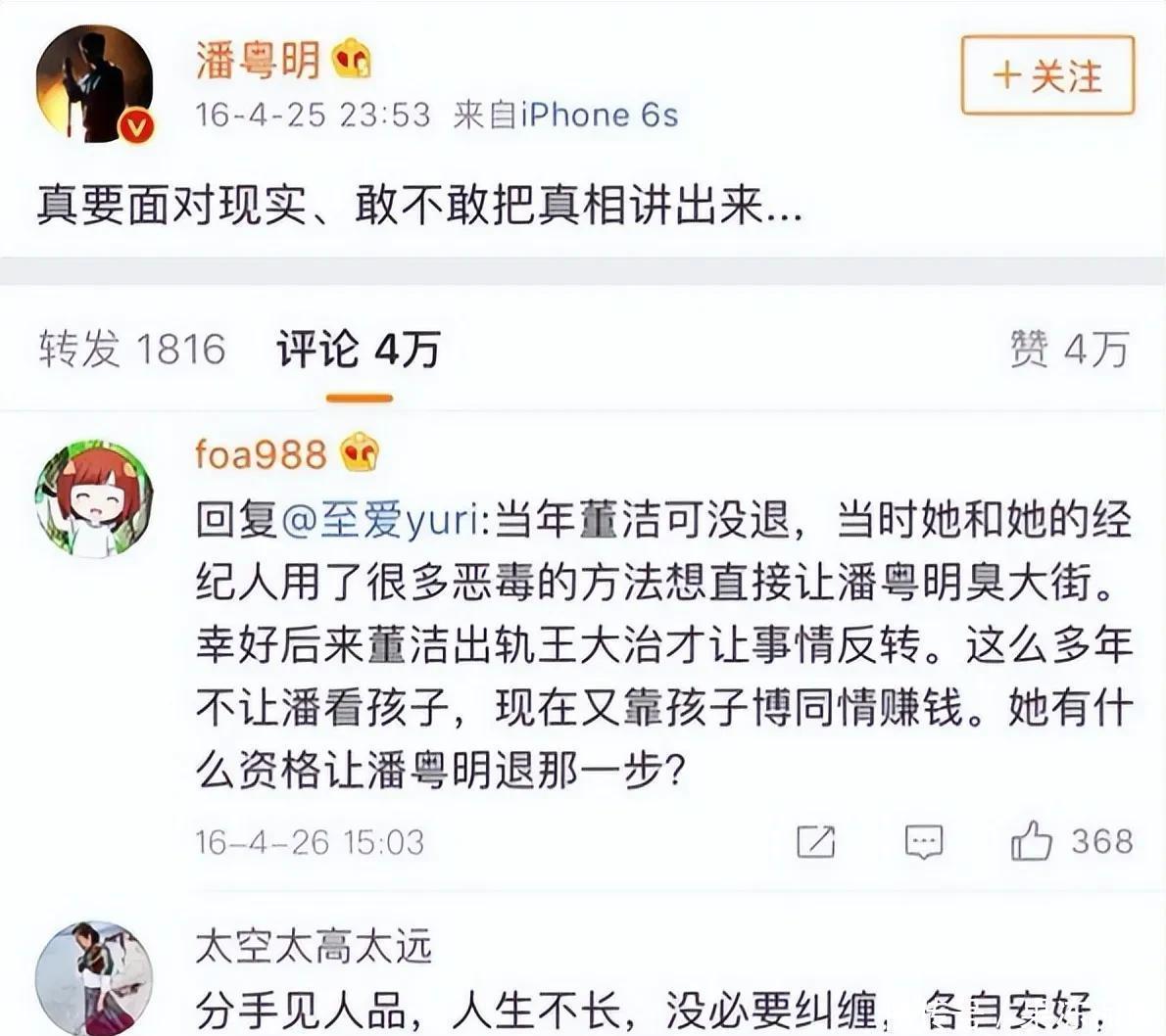 真是人生如戏,戏不如人生。娱乐圈的夫妻档咱们见多了,但像潘粤明和董洁这样,从生死相依到反目成仇,折腾了整整十三年才勉强和解的,还真是独一份。最近这俩人居然在社交媒体上互相关注了,潘粤明还破天荒晒出和儿子顶顶的庆生视频,董洁转发时那句“他一定会越来越好”看得人五味杂陈。这场持续了十多年的离婚拉锯战,背后藏着的辛酸和无奈,远比电视剧更跌宕起伏。